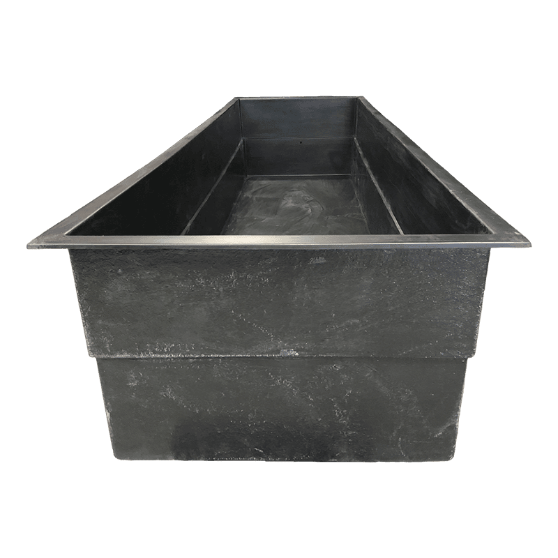 Polyestervijver met volgende afmetingen: 620 x 170 x 100 cm.